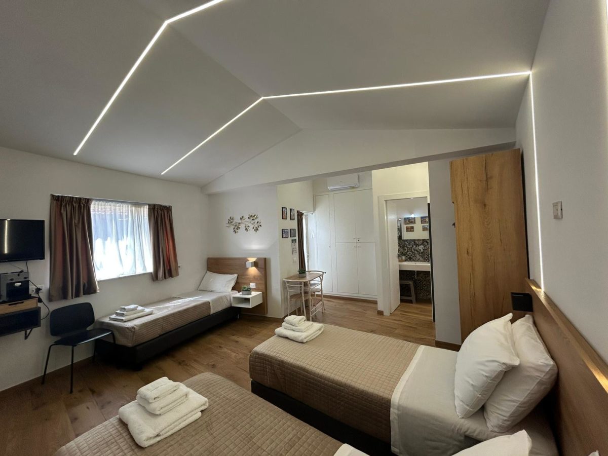 Camera Tripla climatizzata con bagno privato dotato di doccia, bidet, asciugacapelli e set di cortesia. Include TV a schermo piatto, minibar, macchina da caffè, riscaldamento e terrazzo con vista sulla città. Sono presenti un letto matrimoniale e un letto singolo in ampia camera da 23mq. Ideale per un soggiorno confortevole ed esclusivo. La camera puo ospitare anche 3 adulti con letti singoli.